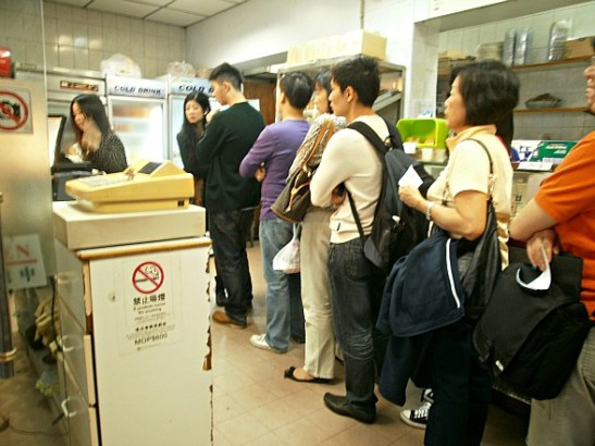 People patiently waiting for freshly baked egg tarts. Yum! π