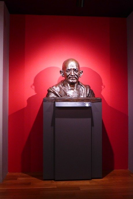 A bust sculpture of Ghandi.
