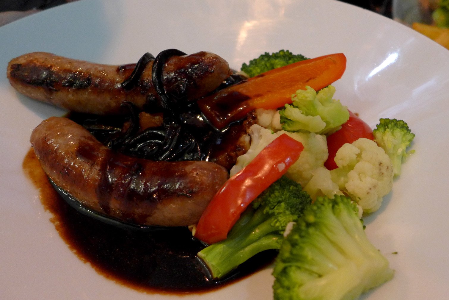 Sausages and roasted vegetables