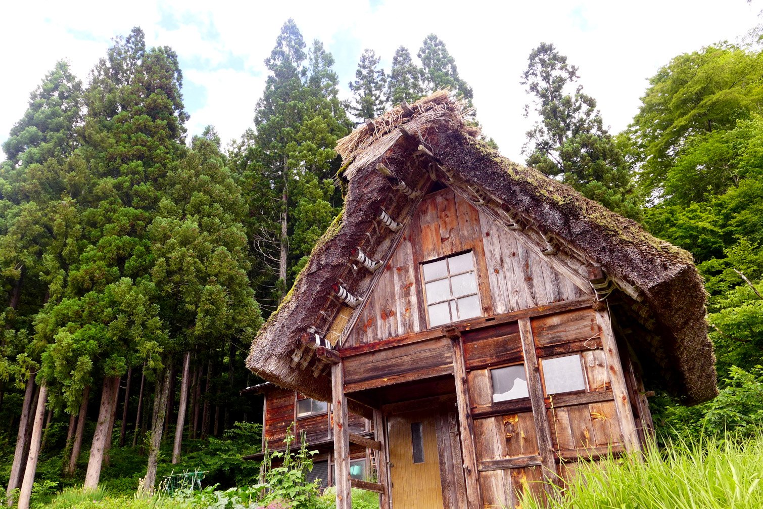 Old houses and pine trees