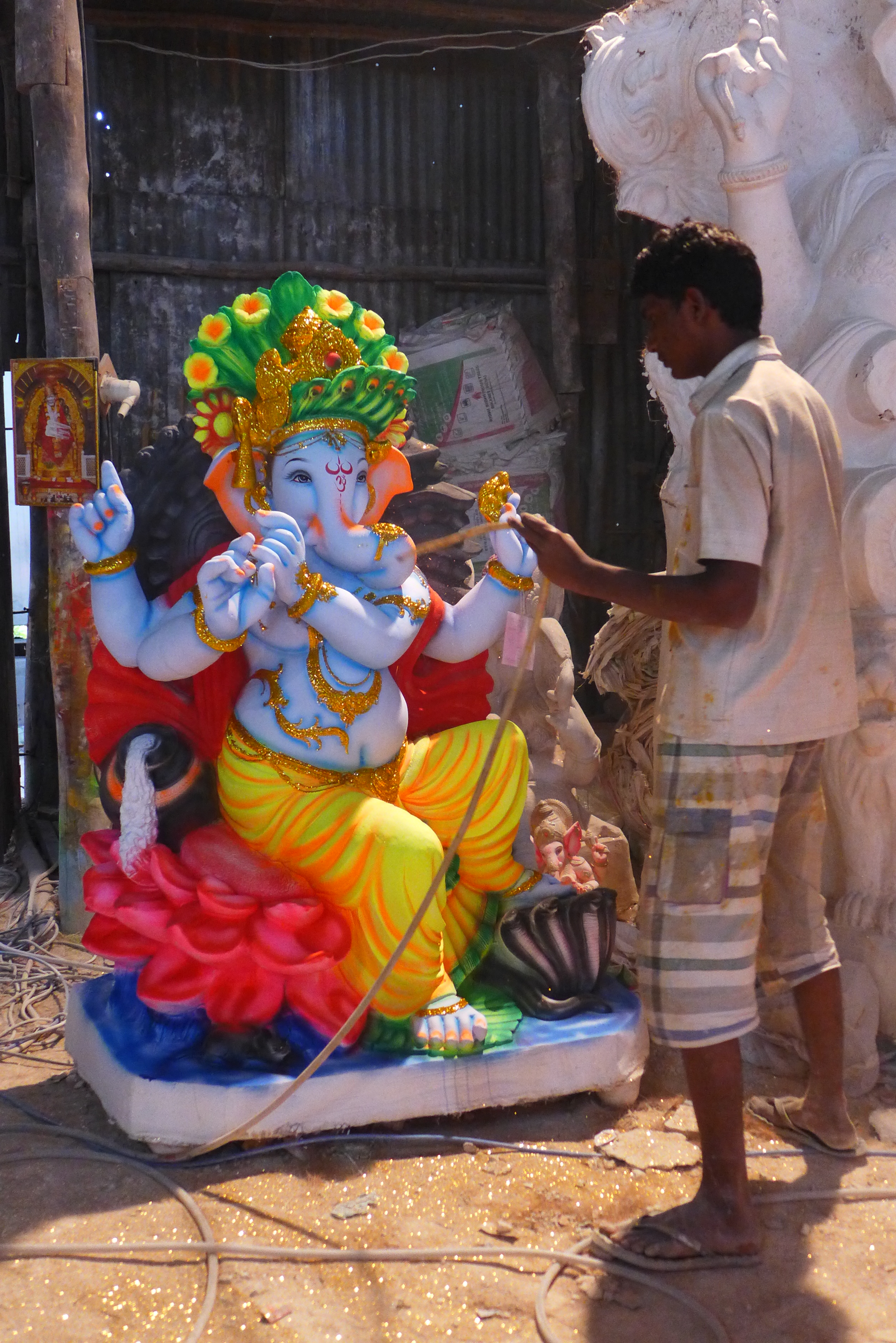 An artist decorating a Ganesha statue